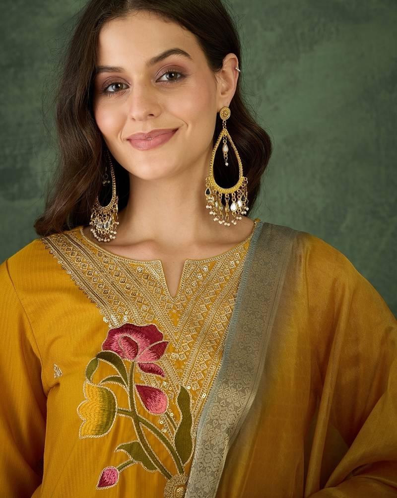 | Product Name | Mustard Embroidered Rayon Readymade Salwar Kameez | |
