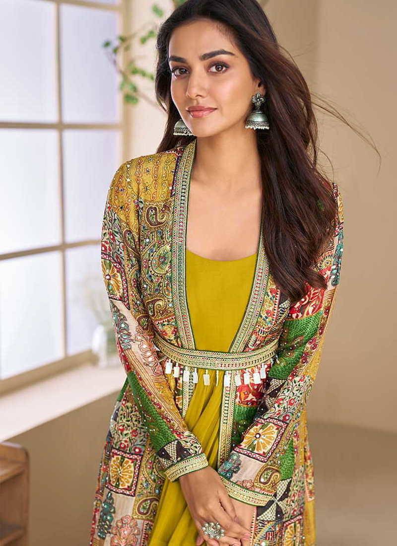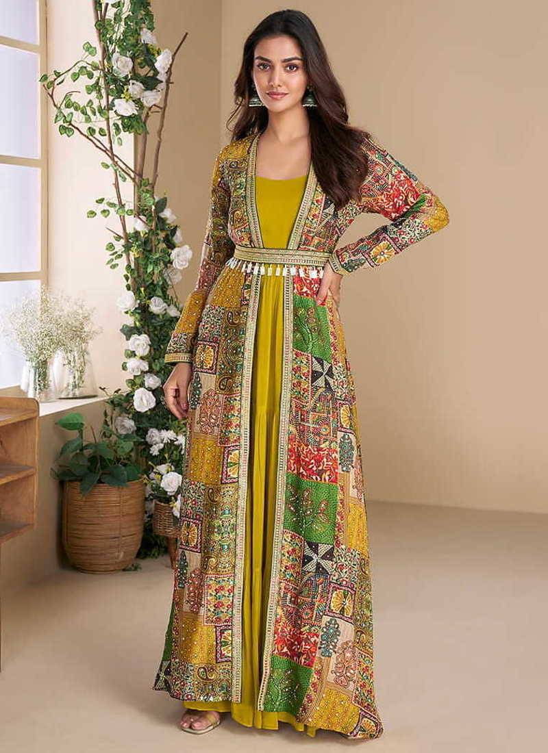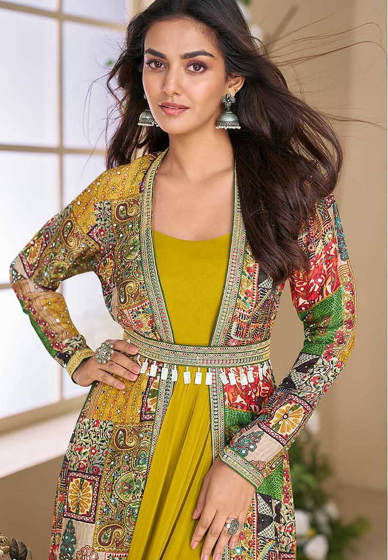 | Product Name | Mustard Georgette Printed Gown With Shrug | |