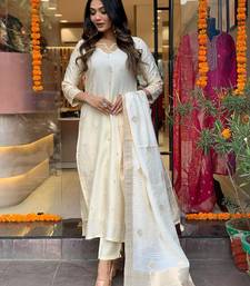 | Product Description | This Off White Kurta Set In Viscose Chanderi Fabric Exudes Quiet Elegance, Making It A Timeless Pick For Festive Gatherings. The Kurta Is Paired With Matching Straight Pants And A Jacquard Dupatta |