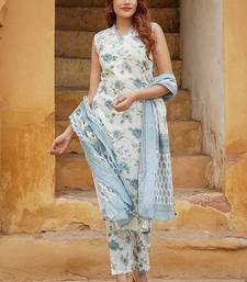 Off white cotton floral print kurta set stitched