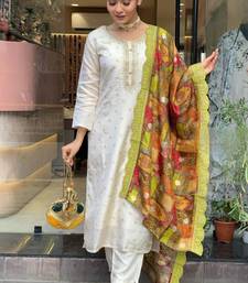 | Product Name | Off White Jacquard Butti Sttiched Straight Suit | |