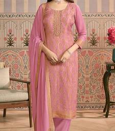 Onion pink embroidred shimmer jacquard salwar suit unstitched