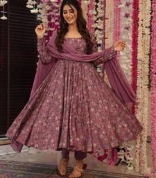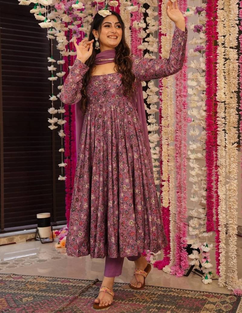 Onion pink reyon printed anarkali kurti plazzo dupatta set stitched