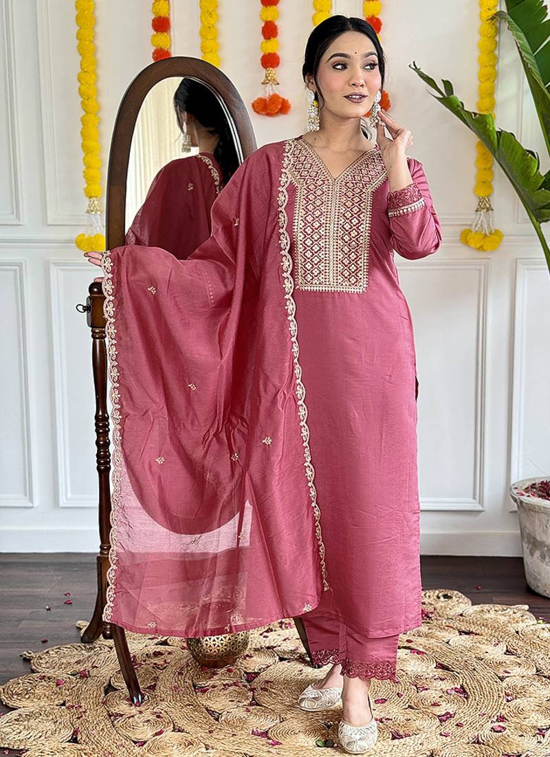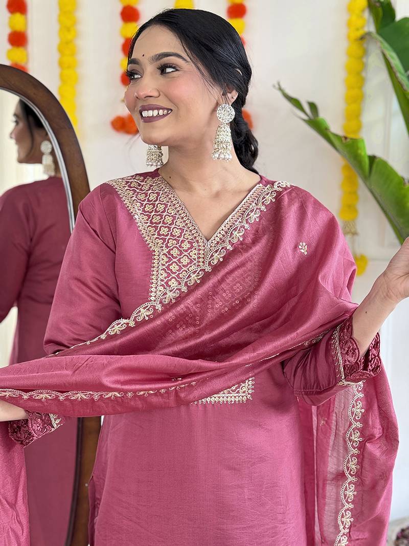 | Product Name | Onion Pink Viscose Chanderi Sttiched Kurta Set | |