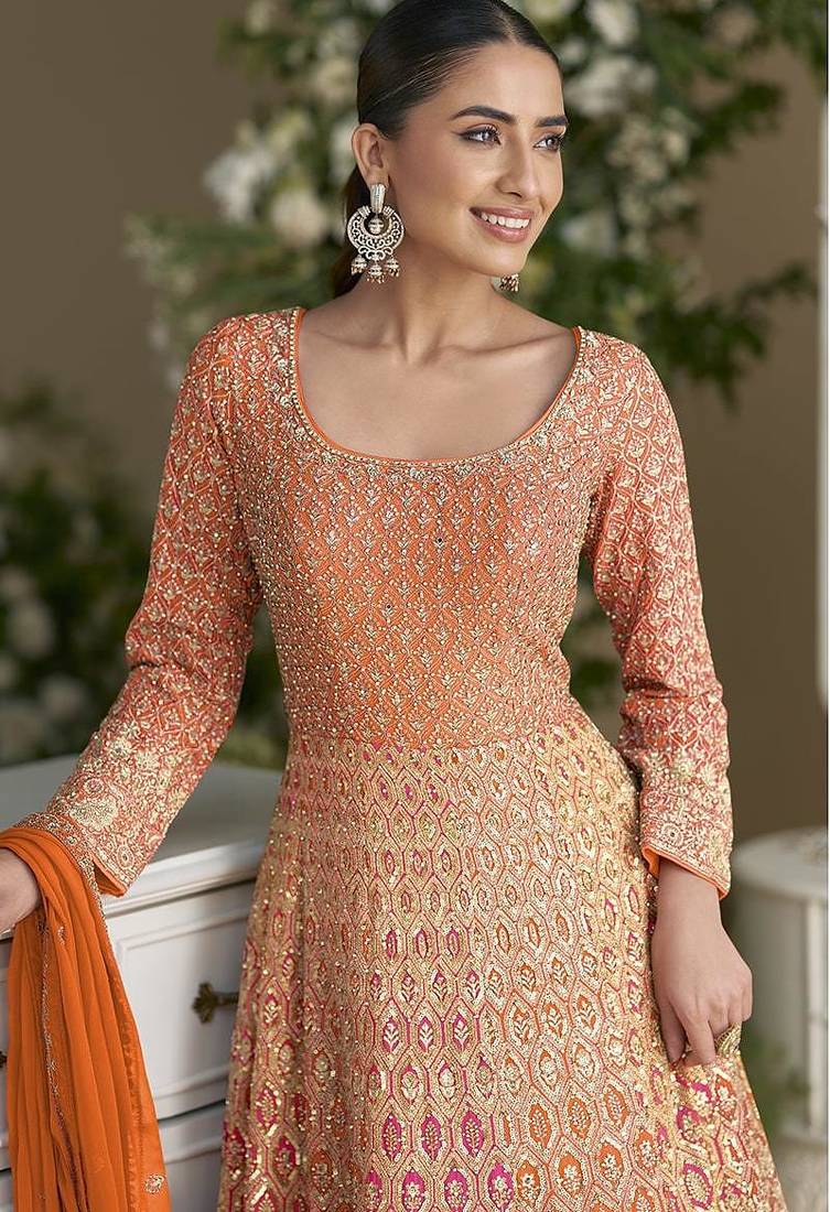| Product Name | Orange Georgette Zarkan Work Gown | |
