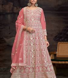 Peach net embroidered anarkali salwar kameez semi stitched