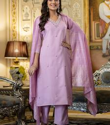 Pink color embroidered viscose rayon kurta set stitched