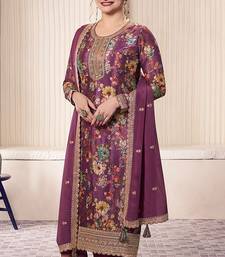 Purple chinon silk digital print salwar suit semi stitched