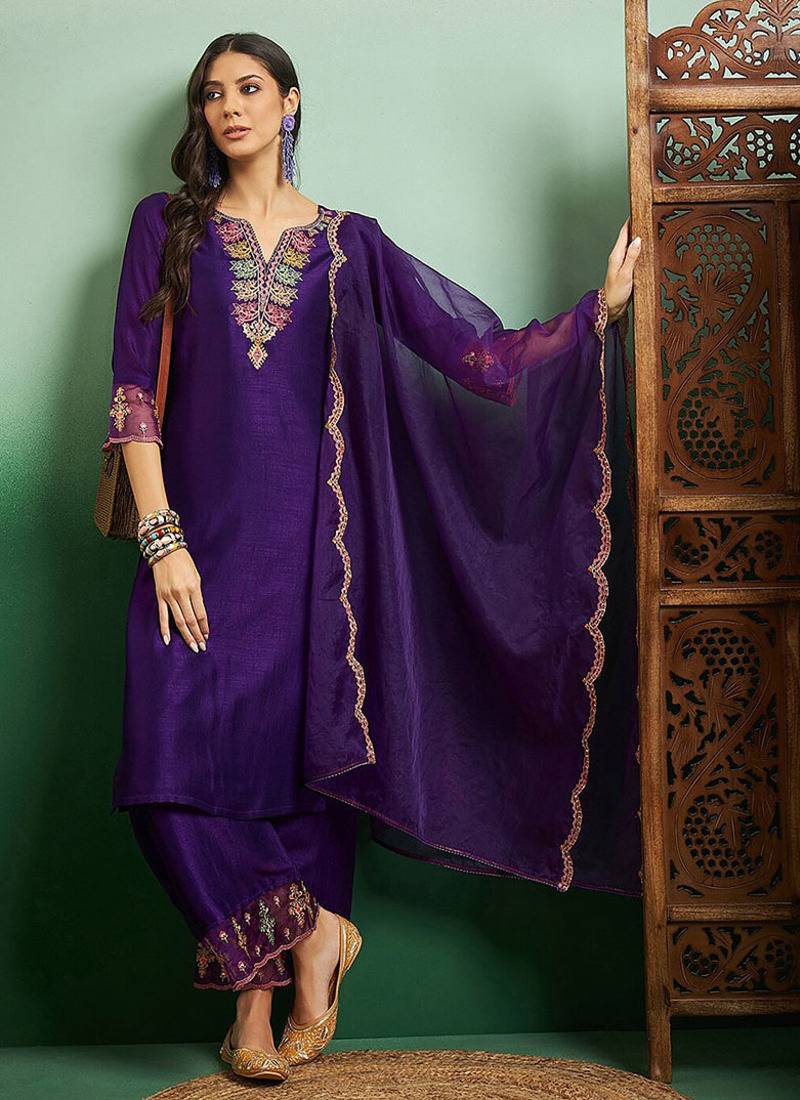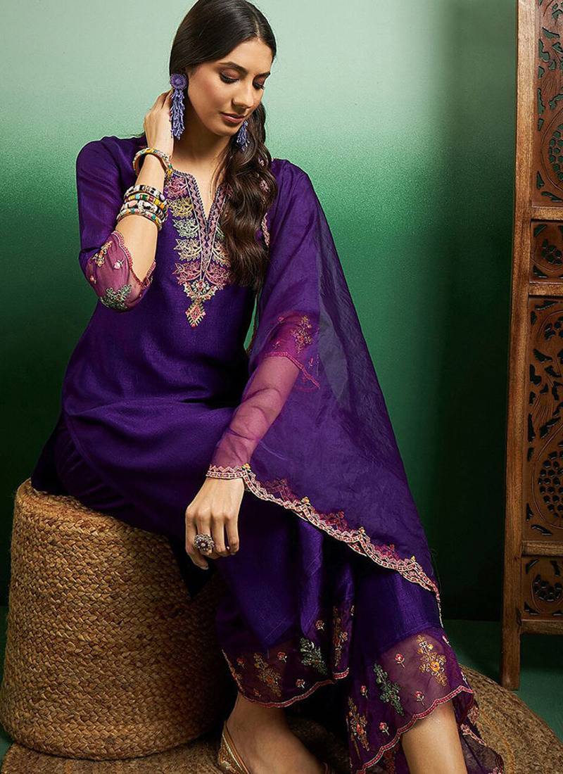 | Product Name | Purple Color Chanderi Embroidered Palazzo Suit | |