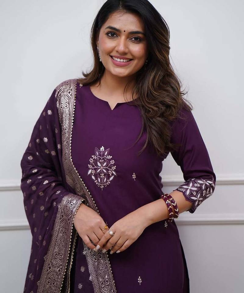 | Product Name | Purple Color Chanderi With Embroidery Work Beautiful Kurta Set | |