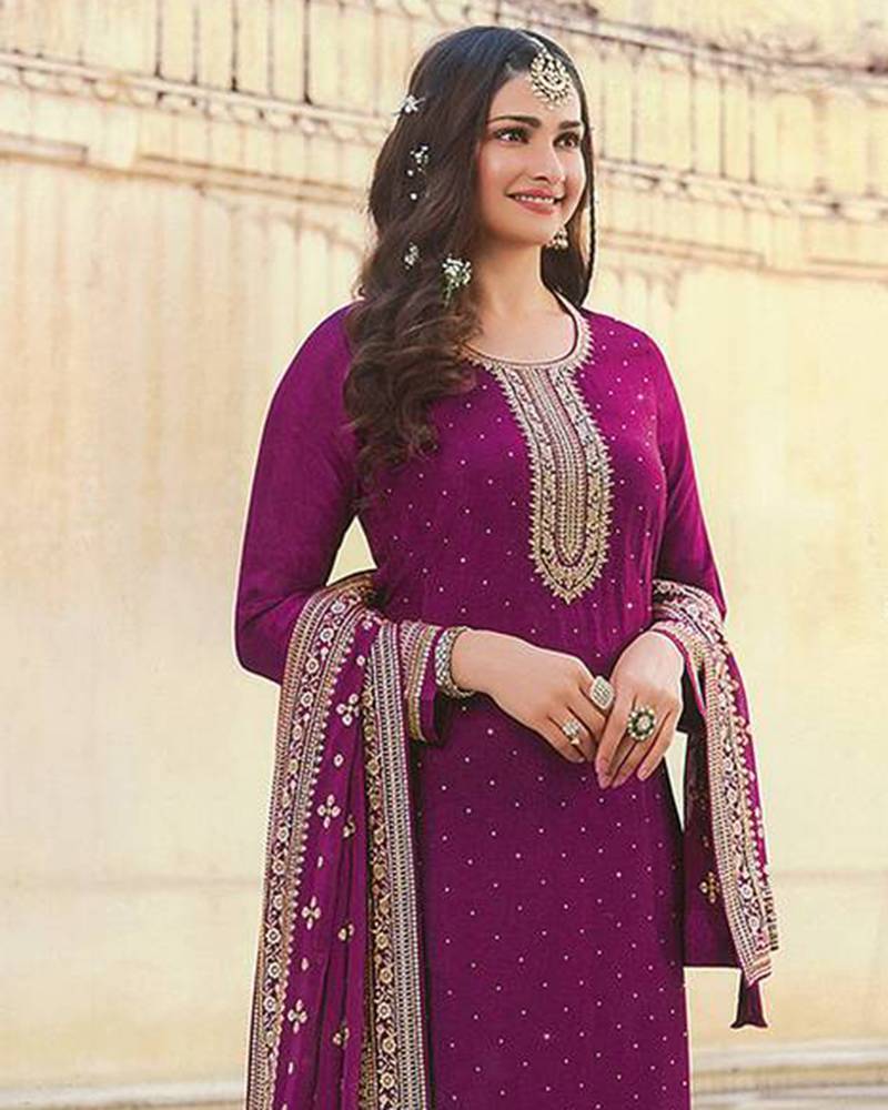 | Product Name | Purple Color Dola Silk Embroidered Long Length Salwar Kameez | |