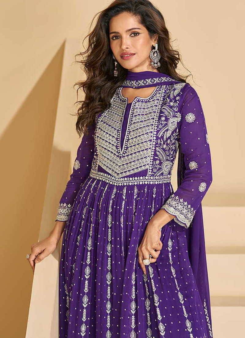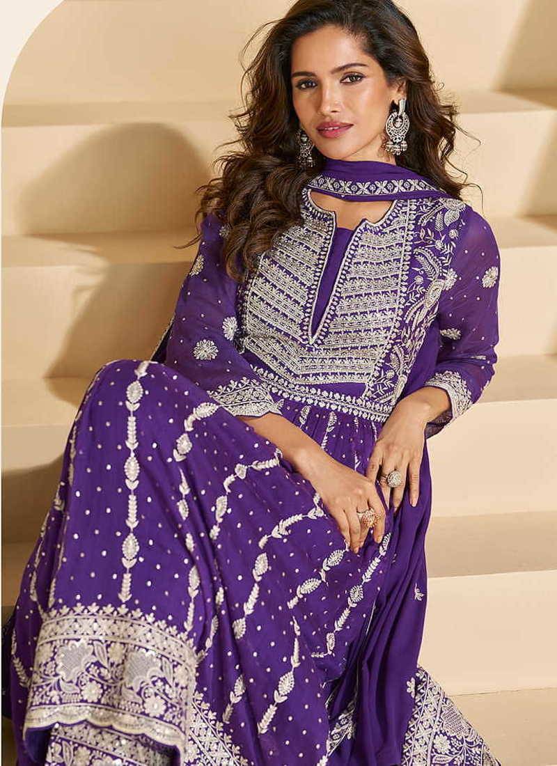 Product Name Purple Georgette Embroidered Palazzo Suit