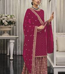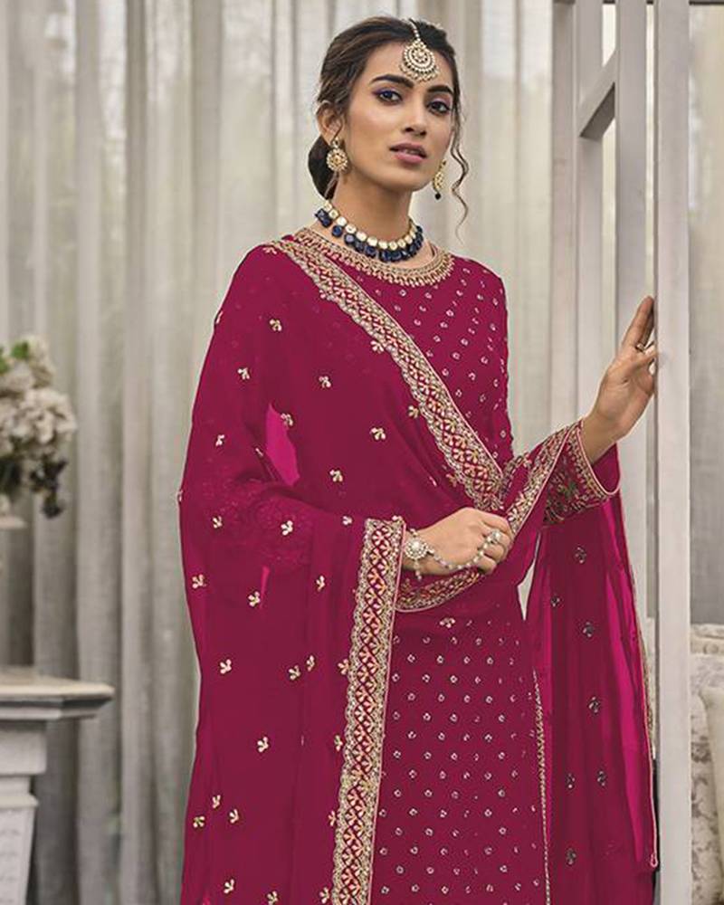 Rani pink color georgette embroidered palazzo suit semi stitched