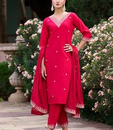 | Product Description | A Vibrant Rani Pink Color Rayon Top Set With Embroidered Work, Styled With Chinon Dupatta. A Strong Color Pop Festive Option With Minimal Fuss. |