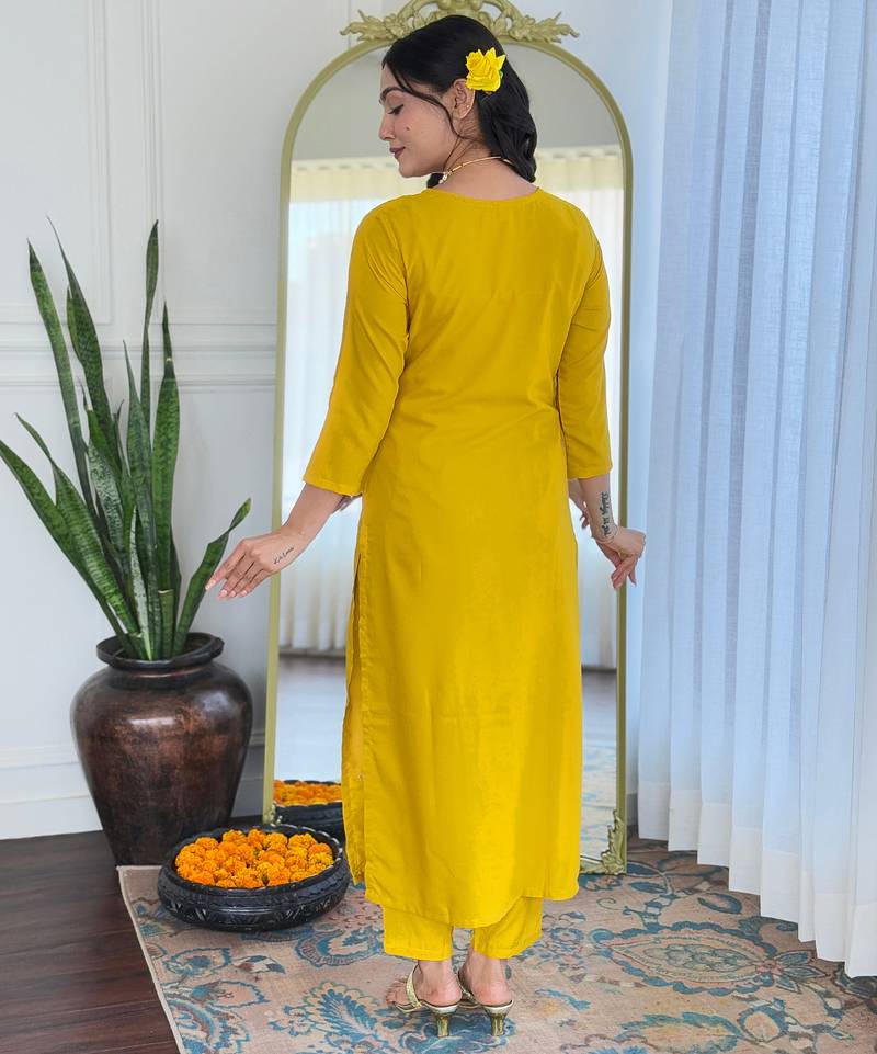 Rayon embroidered mustard trendy salwar kameez stitched
