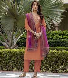 Rayon orange embroidered readymade salwar kameez stitched