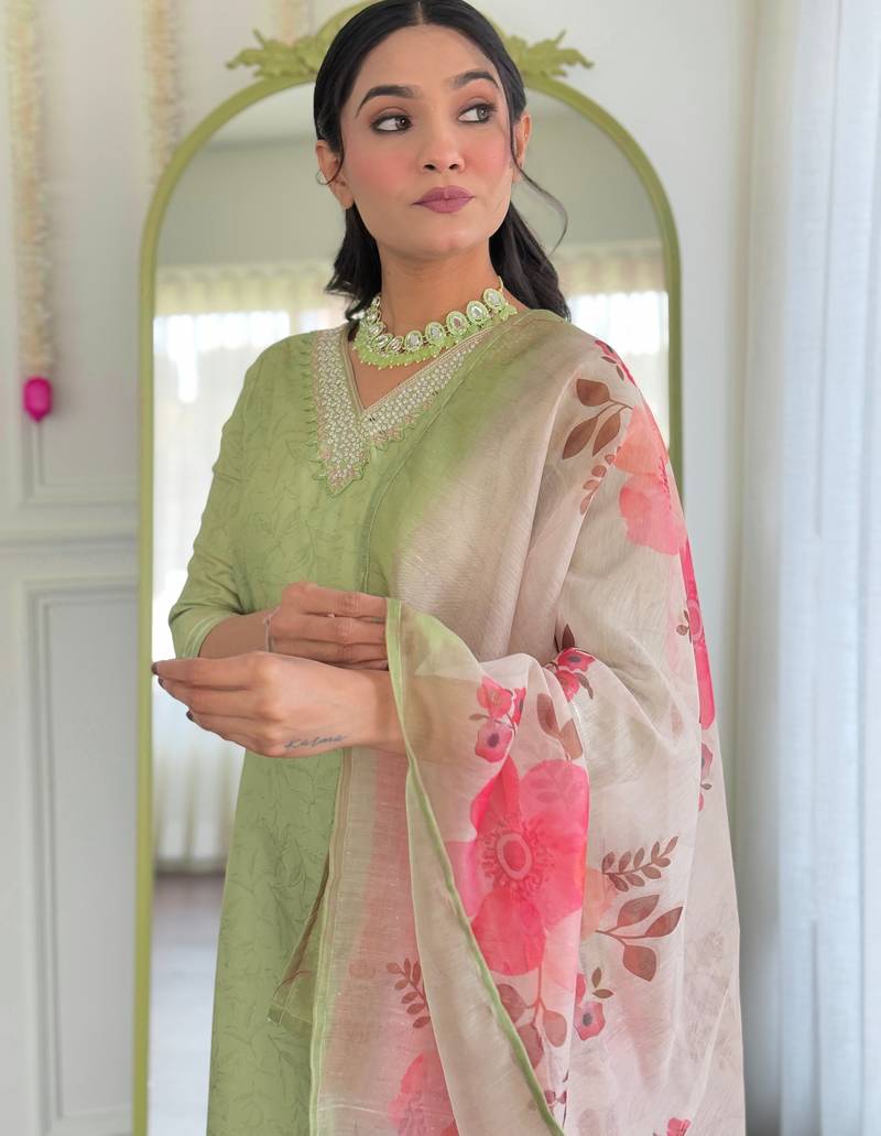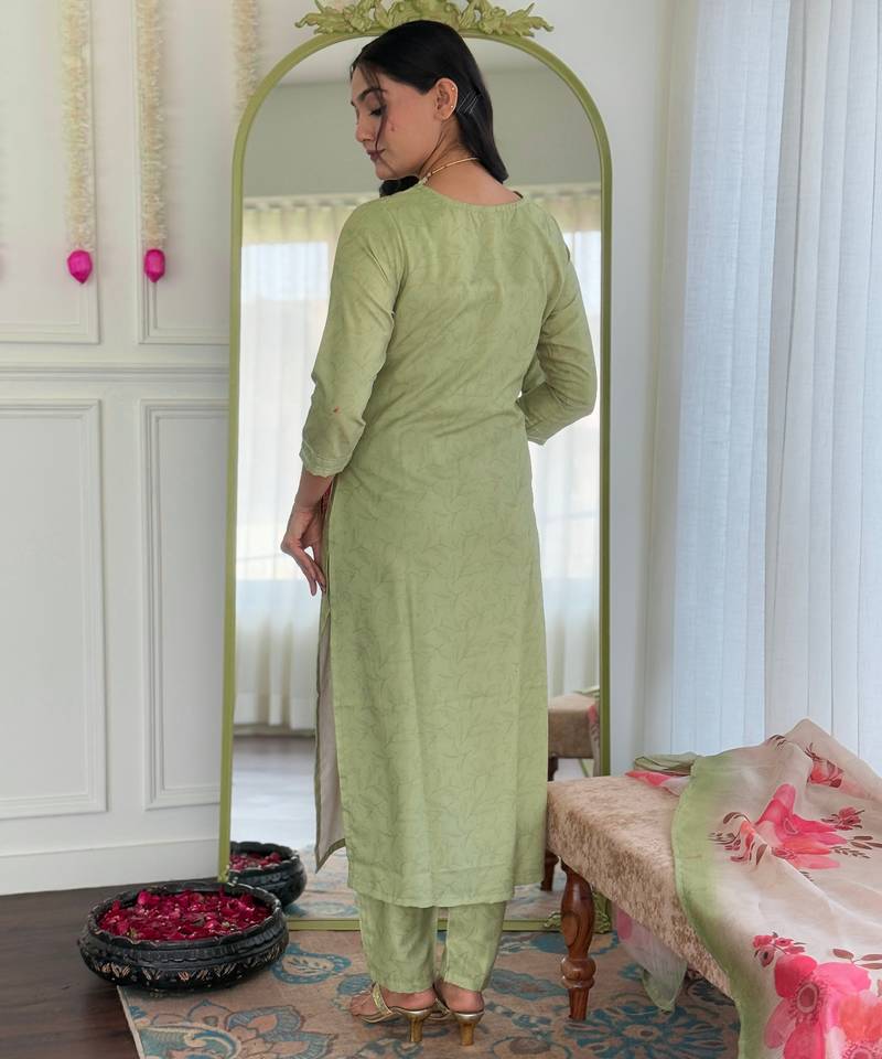 Rayon pista color embroidered trendy salwar kameez stitched