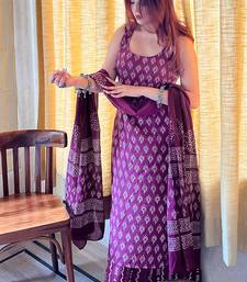 Rayon printed palazzo suit in purple stitched
