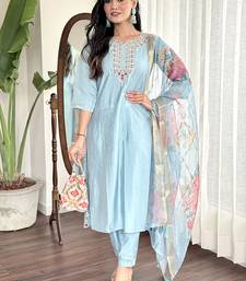 | Product Name | Sky Blue Chanderi Straight Readymade Suit | |