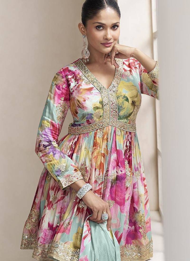| Product Name | Sky Blue Color Chinon Silk Palazzo Set | |