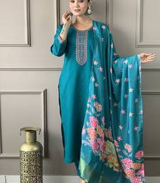 | Product Name | Turquoise Chanderi Embrodiered Ready Made Suit | |