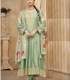 Vichitra silk sea green embroidered anarkali salwar kameez semi stitched