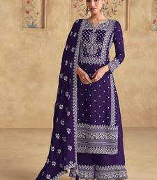 Violet georgette with embroidered palazzo suit semi stitched