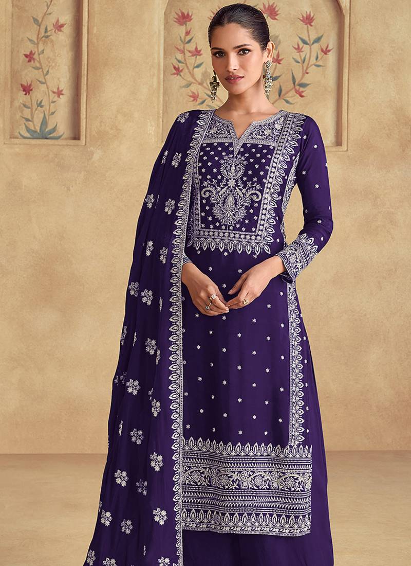 | Product Name | Violet Georgette With Embroidered Palazzo Suit | |