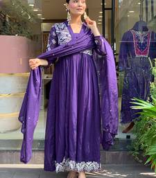 Violet roman silk embroidered anarkali suit stitched