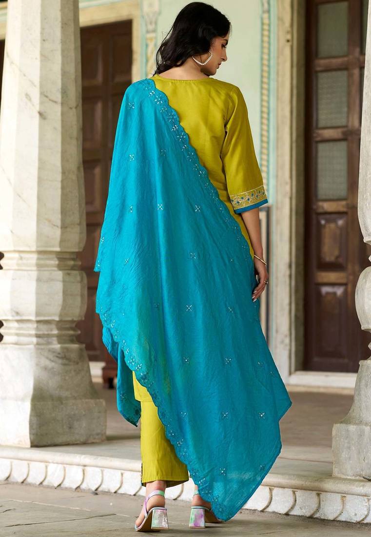 | Product Description | Be The Sunshine Of Anyone’s Eyes Dressed In Such A Green And Mustard Viscose Chanderi Trendy Salwar Kameez. The Wonderful Embroidered Work Across The Attire Is Awe Inspiring.Comes With Matching Bottom And Dupatta. (Slight Variation In Color, Fabric & Work Is Possible. Model Images Are Only Representative.) |