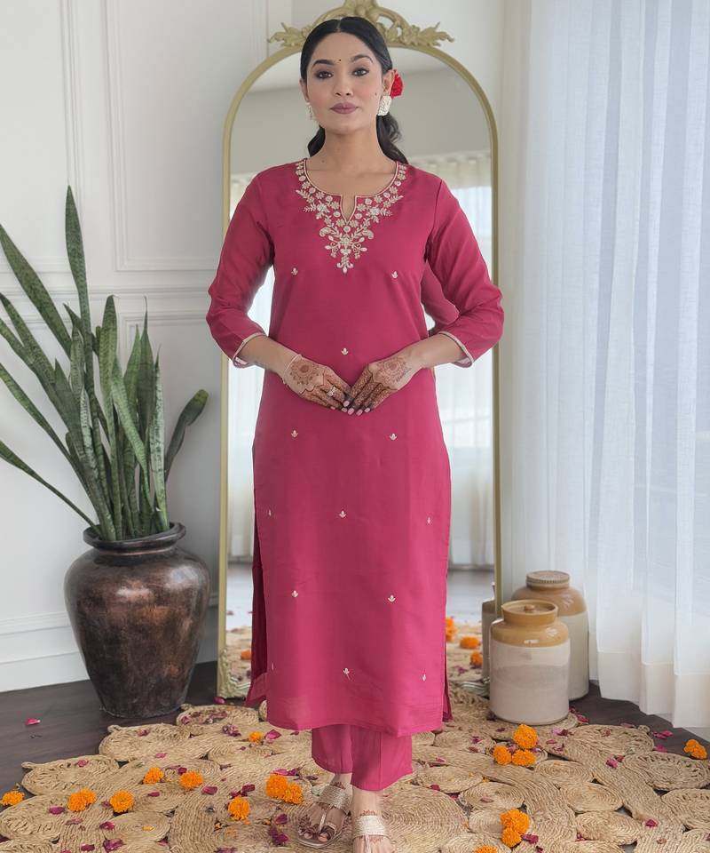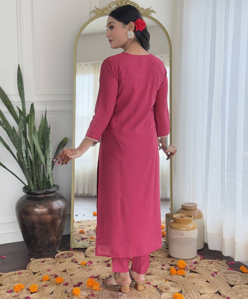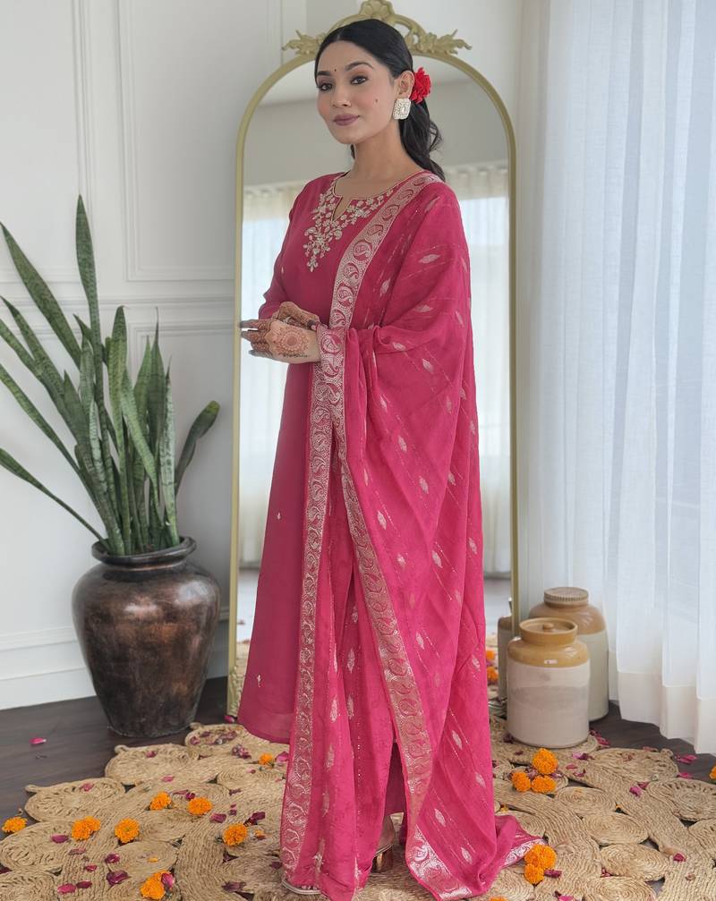 Viscose silk rani pink embroidered salwar suit for festival stitched