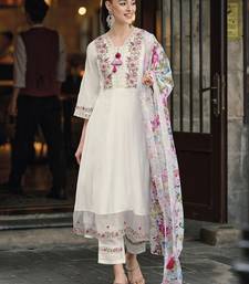 White color chanderi embroidered anarkali suit