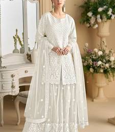 White color net embroidered palazzo suit semi stitched