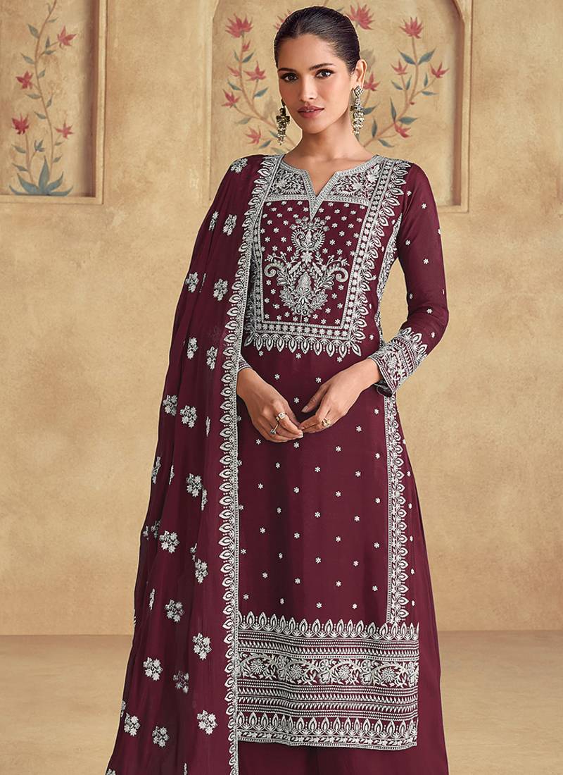 | Product Name | Wine Georgette With Embroidered Palazzo Suit | |