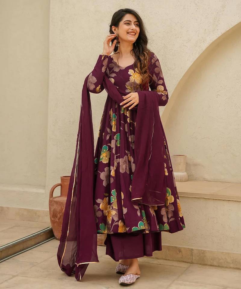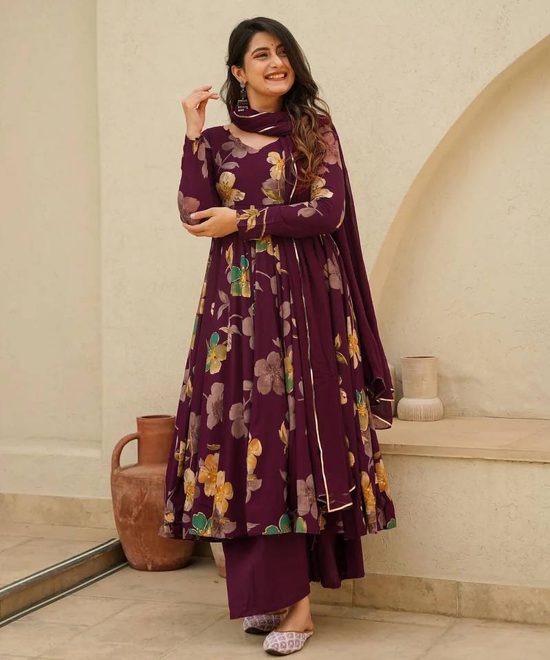 | Product Name | Wine Printed Rayon Anarkali Kurta Palazzo Set | |