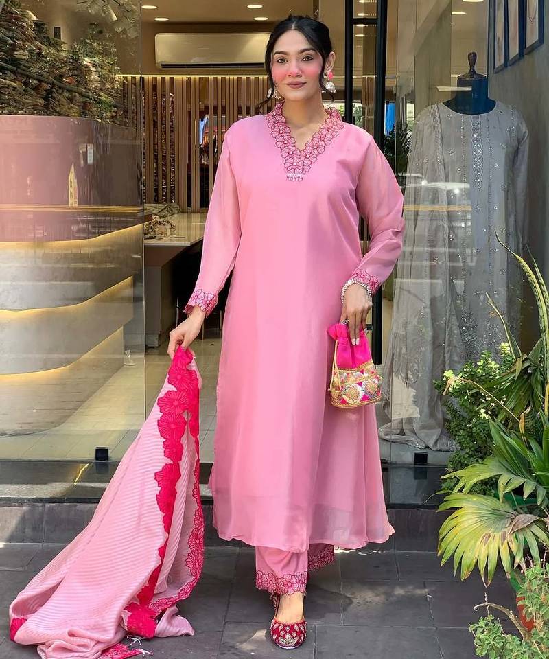| • | Dupatta | : | Color- Pink / Fabric- Chiffon |