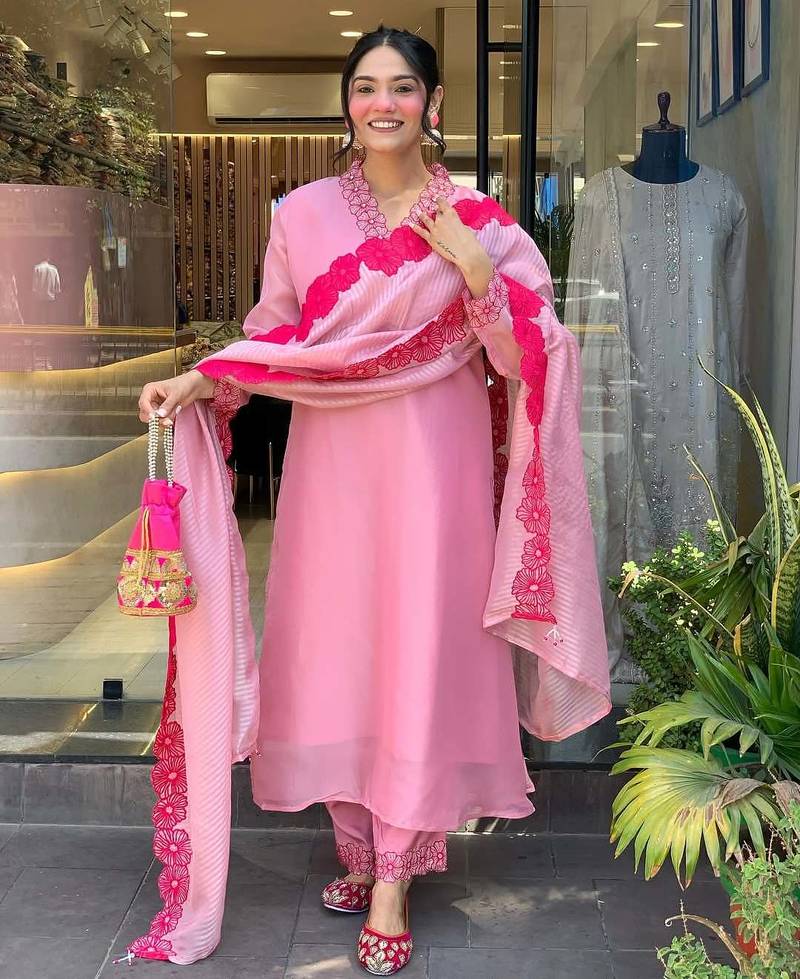 | • | Kameez | : | Color- Pink / Fabric- Faux Chanderi |