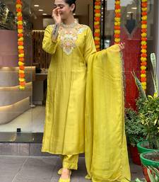 | Product Description | A Bright Festive Yellow Chanderi Straight Kurta Set With Zardosi/Threadwork, Paired With Wide Pant And Organza Dupatta Ideal For Pooja Or Daytime Celebrations. |