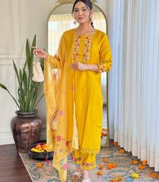 | Product Description | Designed In Luxurious Yellow Gadhwal Silk This Festive Pant Set Features A Straight Kurta Detailed With Thread Embroidery For A Refined Finish. Styled With A Keyhole Neckline And Full Sleeves, It Is Paired With Pant And An Organza Dupatta. |