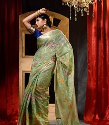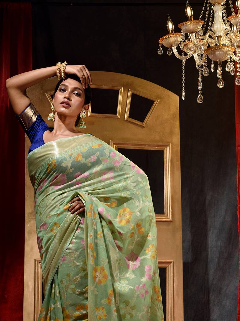 Handwoven pista floral weaved banarasi saree with blouse piece