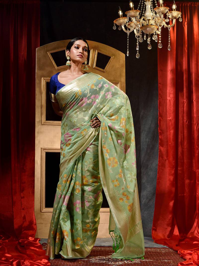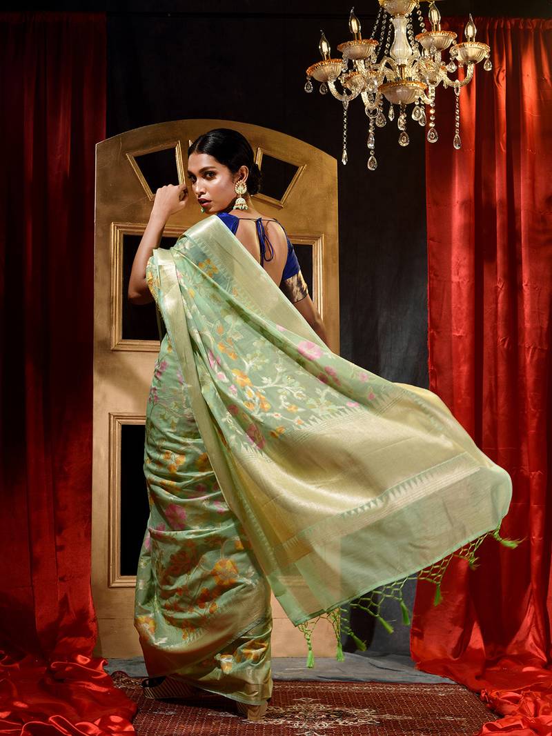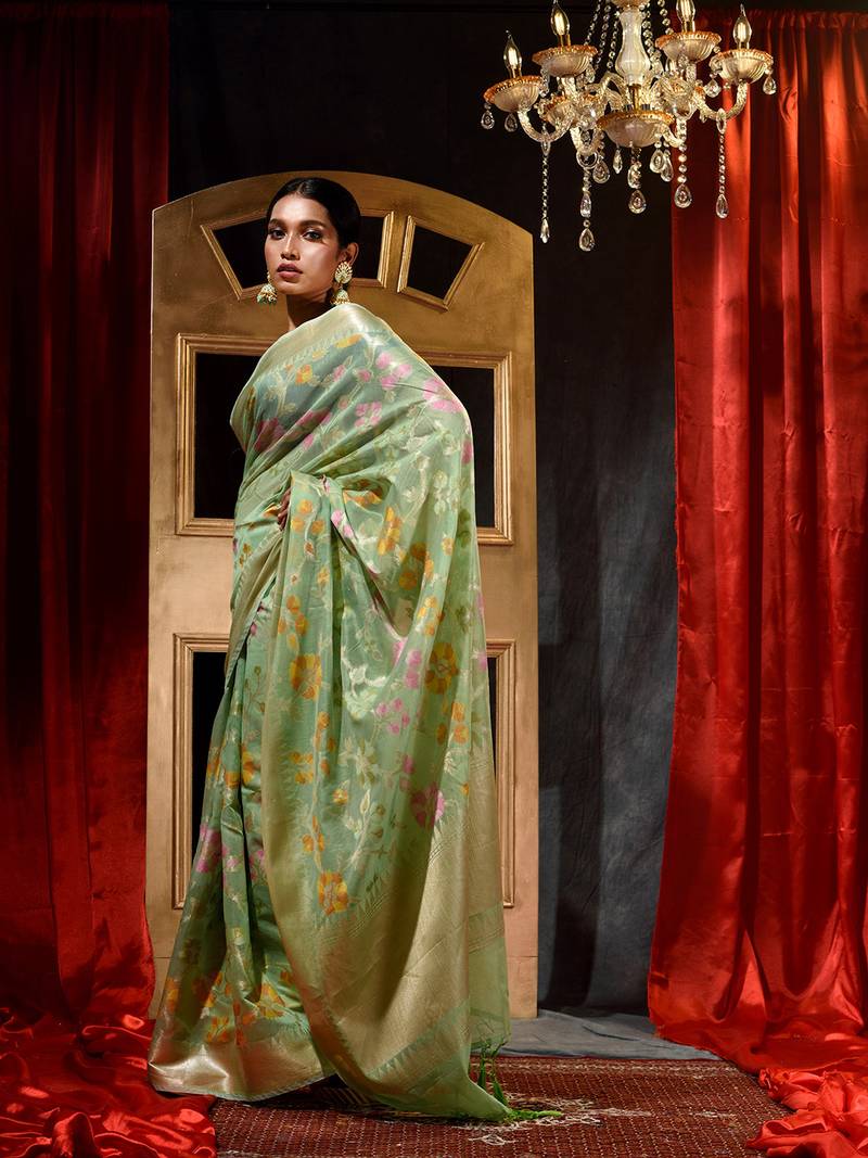 | Product Name | Handwoven Pista Floral Weaved Banarasi Saree With Blouse Piece | |