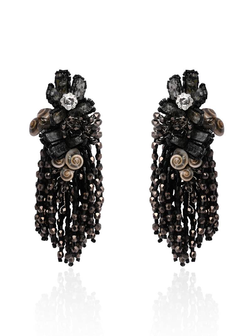Jet black black anti tarnish cocktail statement earrings