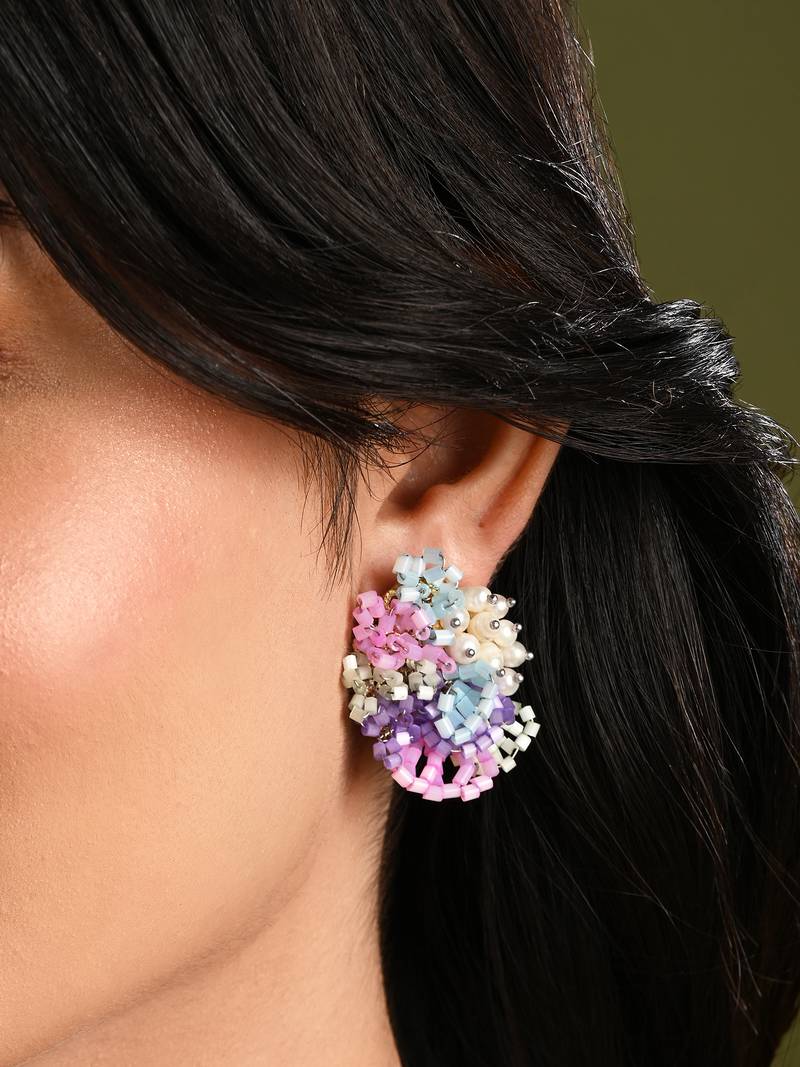 | Product Name | Pearl And Colourful Flower Round Stud Earrings | |