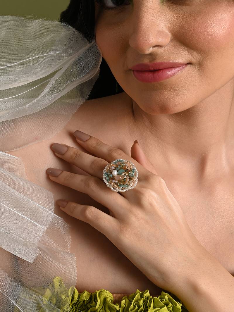 | Product Name | Pearl And Crystal Floral Round Finger Ring For Women | |