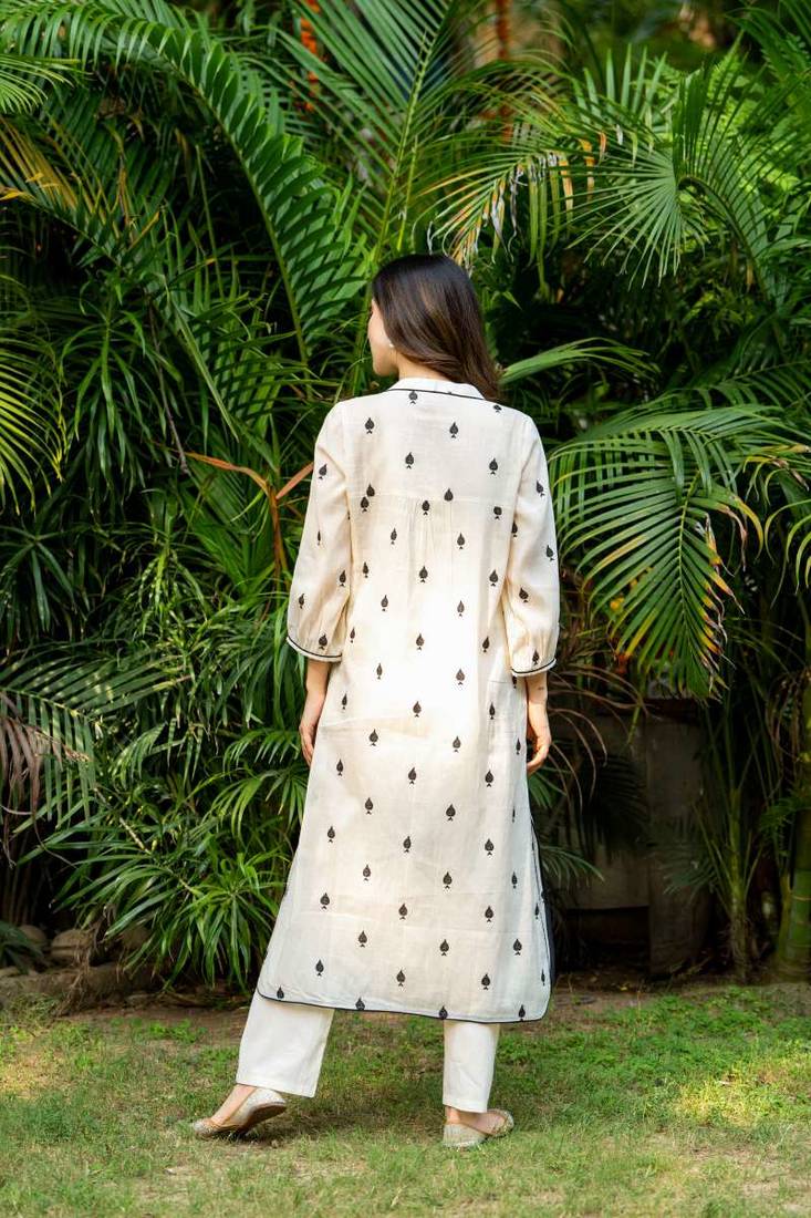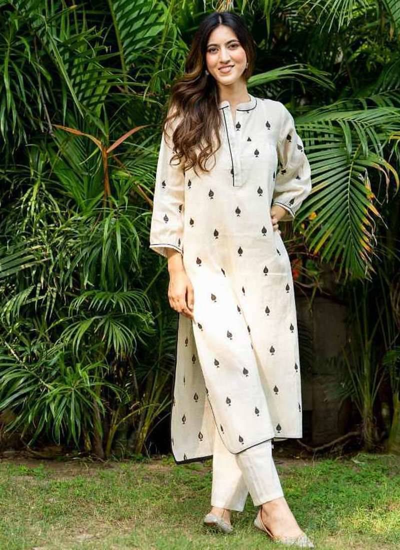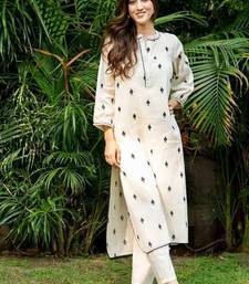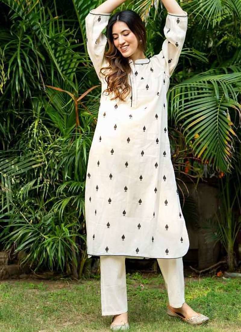 White emboridered cotton strate kurta set