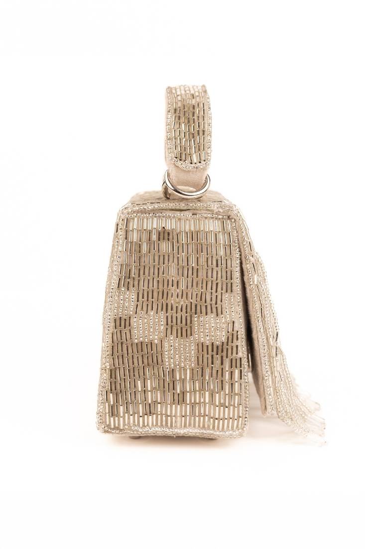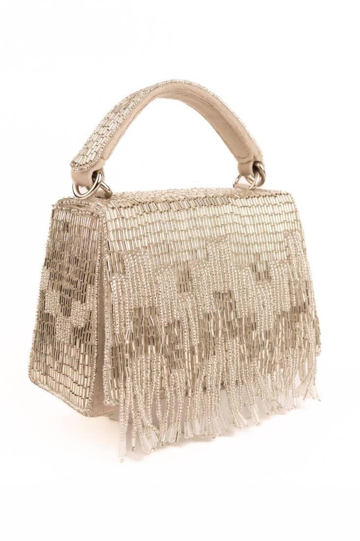 Elegant, Radiant, And Designed To Mesmerise — The Bushra Silber Suede Handcrafted Box Bag Is A Celebration Of Festive Drama. Wrapped In Rich Silver/Grey Suede, This Structured Box Silhouette Is Adorned With Intricate Cutdana And Bead Embroidery And Layered Fringe Detailing That Creates Graceful Movement With Every Step. Designed For Occasions When You Want To Carry Just The Essentials, This Compact Box Bag Does Not Fit A Phone But Is Perfect For Cards, Cash, Keys, And Touch Up Makeup. The Detachable Chain And The Sculpted Handle Adds Strength And Makes It Functional. Perfect For Weddings, Festive Soirées, And Statement Styling, This Handcrafted Piece Brings Timeless Glamour With A Modern Edge.