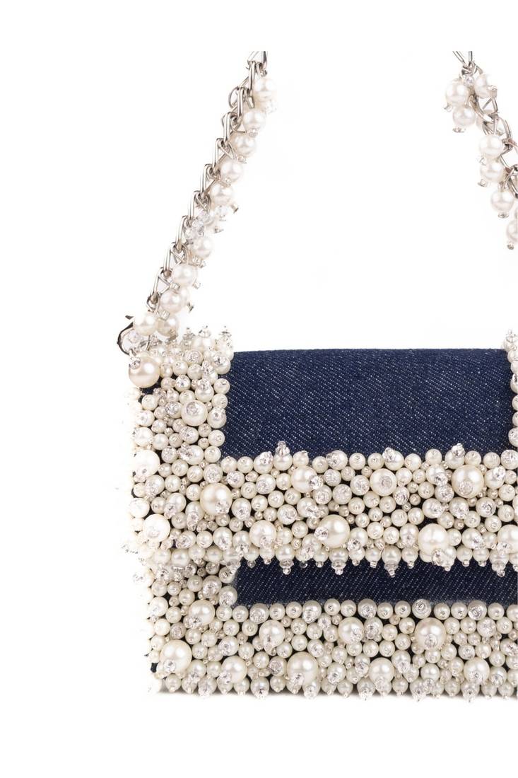 | Product Description | Modern, Artistic, And Effortlessly Chic — The Elana Denim Pearl Crystal Embellished Mini Bag Blends Contemporary Textures With Classic Glamour. Designed With A Denim Toned Base, This Mini Bag Features Layered Pearl And Crystal Embroidery That Creates A Unique Couture Look. Designed For Carrying Essentials Only, This Compact Silhouette Does Not Fit A Phone And Is Perfect For Cards, Cash, Keys, And Makeup. The Structured Form And Elegant Handle Make It Ideal For Festive Styling And Fashion Forward Looks.