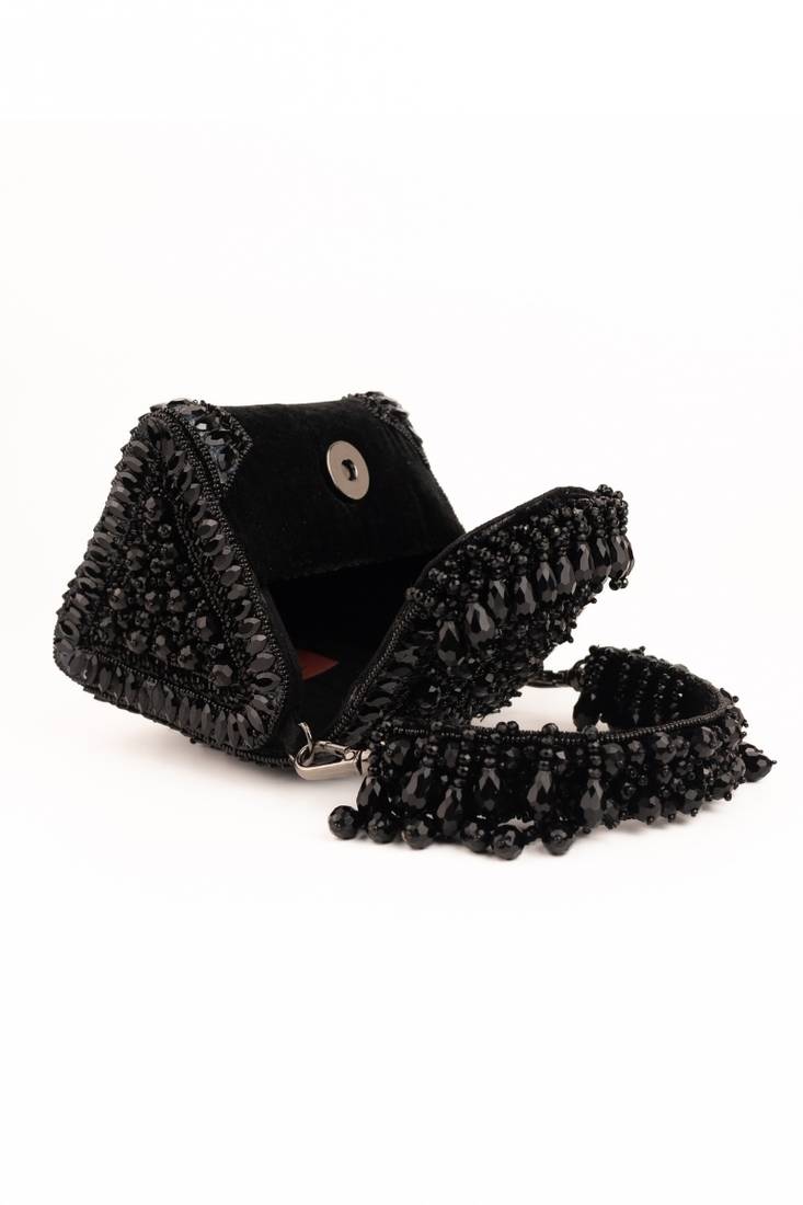 | Product Description | Classic, Powerful, And Effortlessly Chic — The Josy Black Suede Embellished Mini Bag Is A Timeless Evening Essential. Featuring Rich Black Suede, A Unique Prism Shape, Intricate Beadwork And Crystal Work, And Layered Tassel Detailing, This Structured Mini Silhouette Creates Texture, Movement, And Festive Drama. Finished With An Embellished Handle, It’s Perfect For Weddings And Statement Evening Looks. Fits In Your Lipstick, Card, Cash, Keys, Etc. Product Colour May Slightly Vary Due To Photographic Lighting Sources Or Your Monitor Settings. |