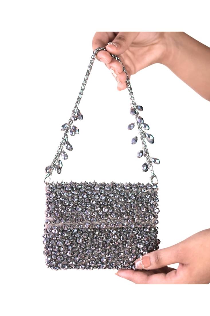 | Product Description | Our Kiyara Grey Suede Crystal Embellished Mini Clutch Bag Is A Beautifully Handcrafted Mini Clutch In Grey With Crystals Fully Embroidered On Bag's Front And Back Sides, Beautifully Crafted On A Suede Base. It Has A Magnetic Flap Closure And A Beautiful Short Metal Handle With Crystal Fallings, Representing A Playful Blend Of Modern And Contemporary Aesthetics. Product Colour May Slightly Vary Due To Photographic Lighting Sources Or Your Monitor Settings. |