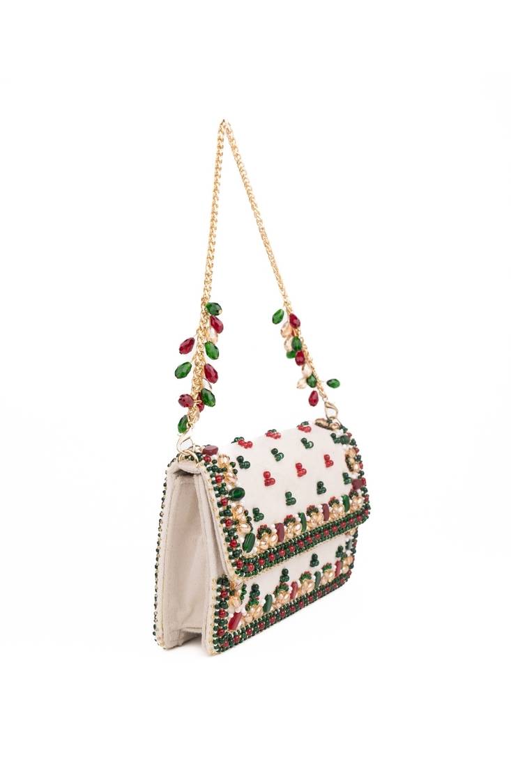 | Product Description | Vibrant, Artistic, And Celebration Ready — The Noori Multicolor Suede Embellished Clutch Is A Bold Expression Of Festive Craftsmanship. Wrapped In Rich Suede, This Structured Clutch Is Adorned With Intricate Multicolour Bead And Pearl Embroidery That Creates A Striking Textured Surface. Designed To Fit Your Phone Along With Essentials Like Cards, Cash, Keys, And Makeup, It Offers Both Beauty And Functionality. The Embellished Strap Adds A Refined Finishing Touch, Making It Perfect For Weddings And Festive Occasions.